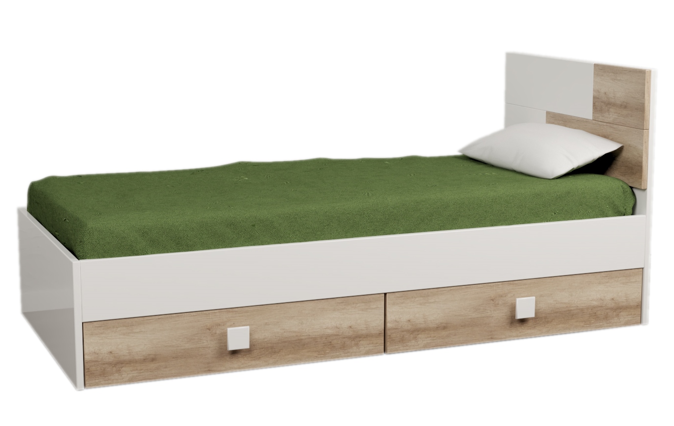 Прочные выдвижные ящики кровати изготовлены с применением метабоксов, что делает изделие надежным и практичным.