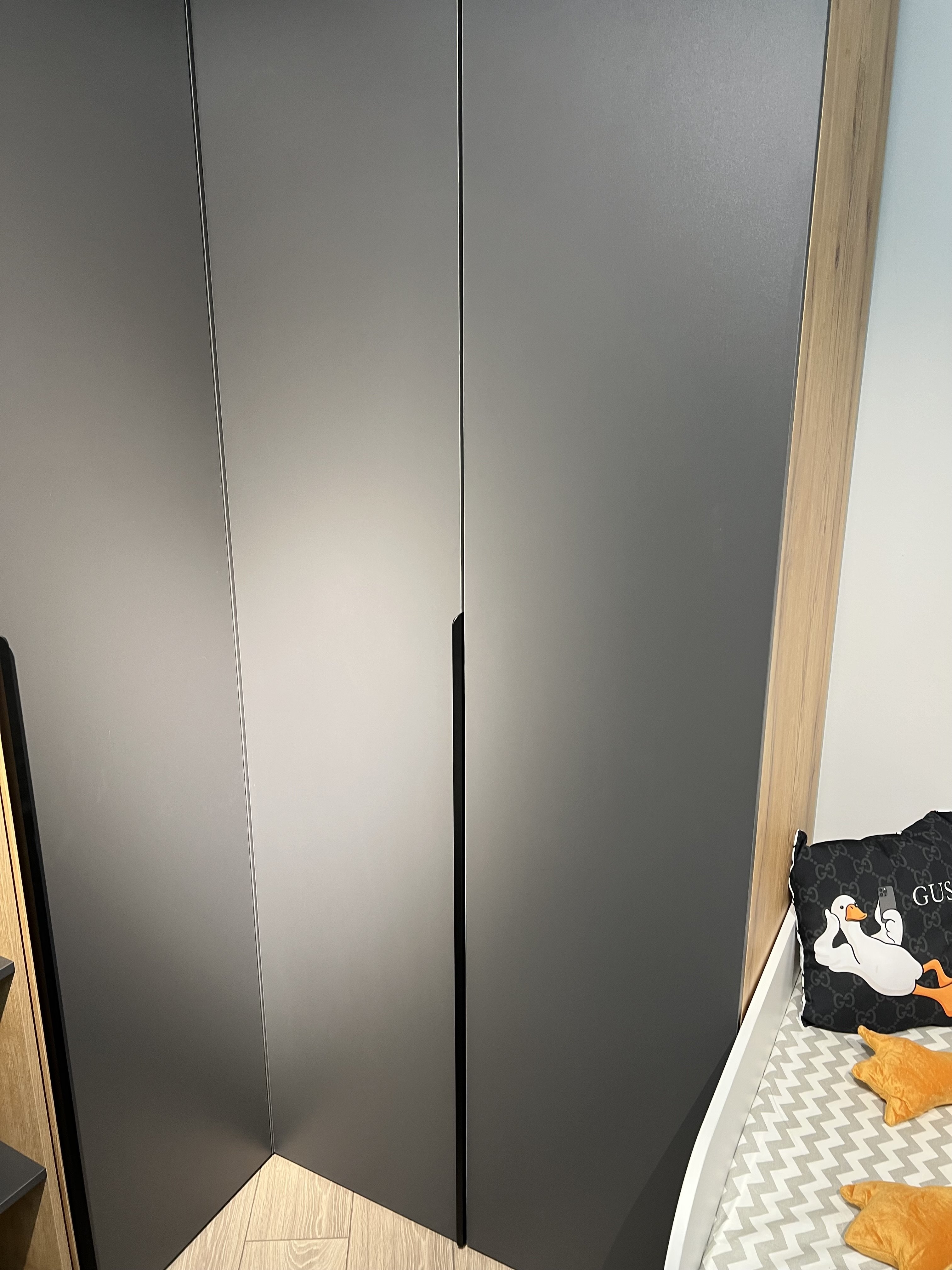 Трендовая ручка-профиль из алюминия с отделкой черный матовый бархат добавляет изделию стильную изюминку.