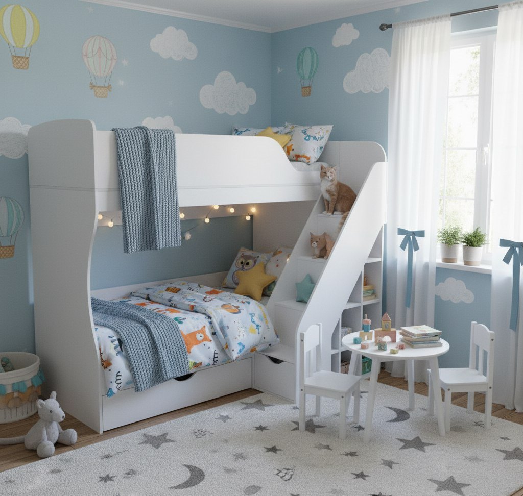 * Дополнительно к нижней кровати можно приобрести съемный бортик-ограничитель