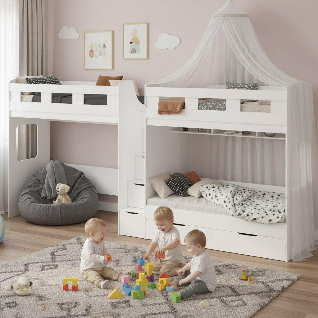 - Максимальная экономия пространства: модель освобождает место для игр и учебы, сохраняя при этом уют и комфорт.