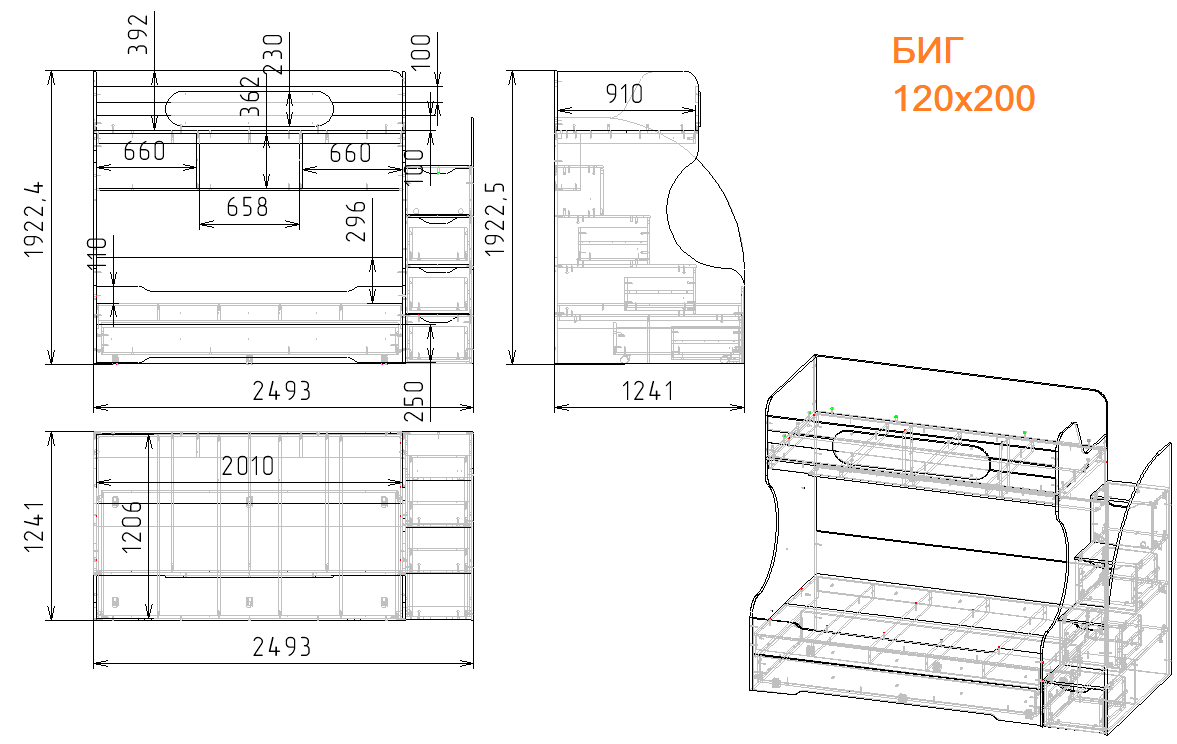 Просторная двухъярусная кровать БИГ с дополнительным третьим спальным местом