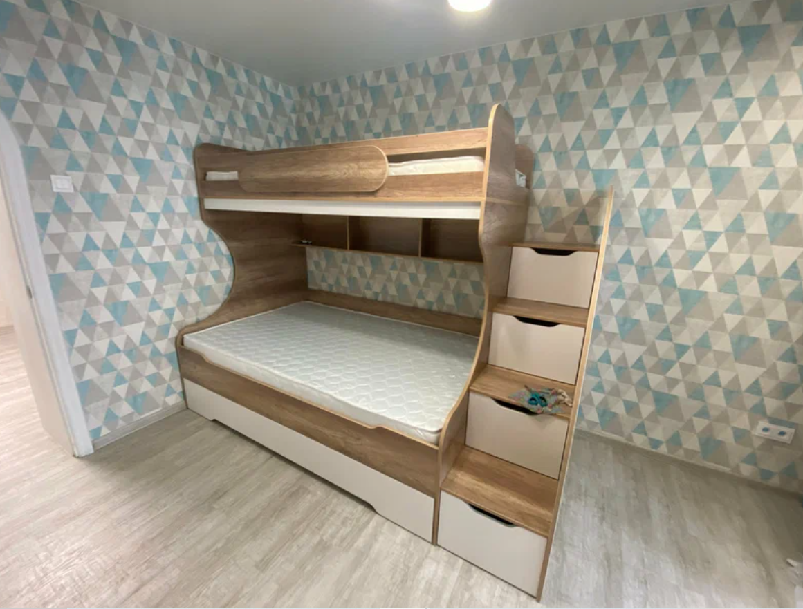 Вместо них - цельный и прочный настил из ЛДСП, который выдерживает сверхвысокую нагрузку и позволяет расположиться даже взрослому с ребенком.