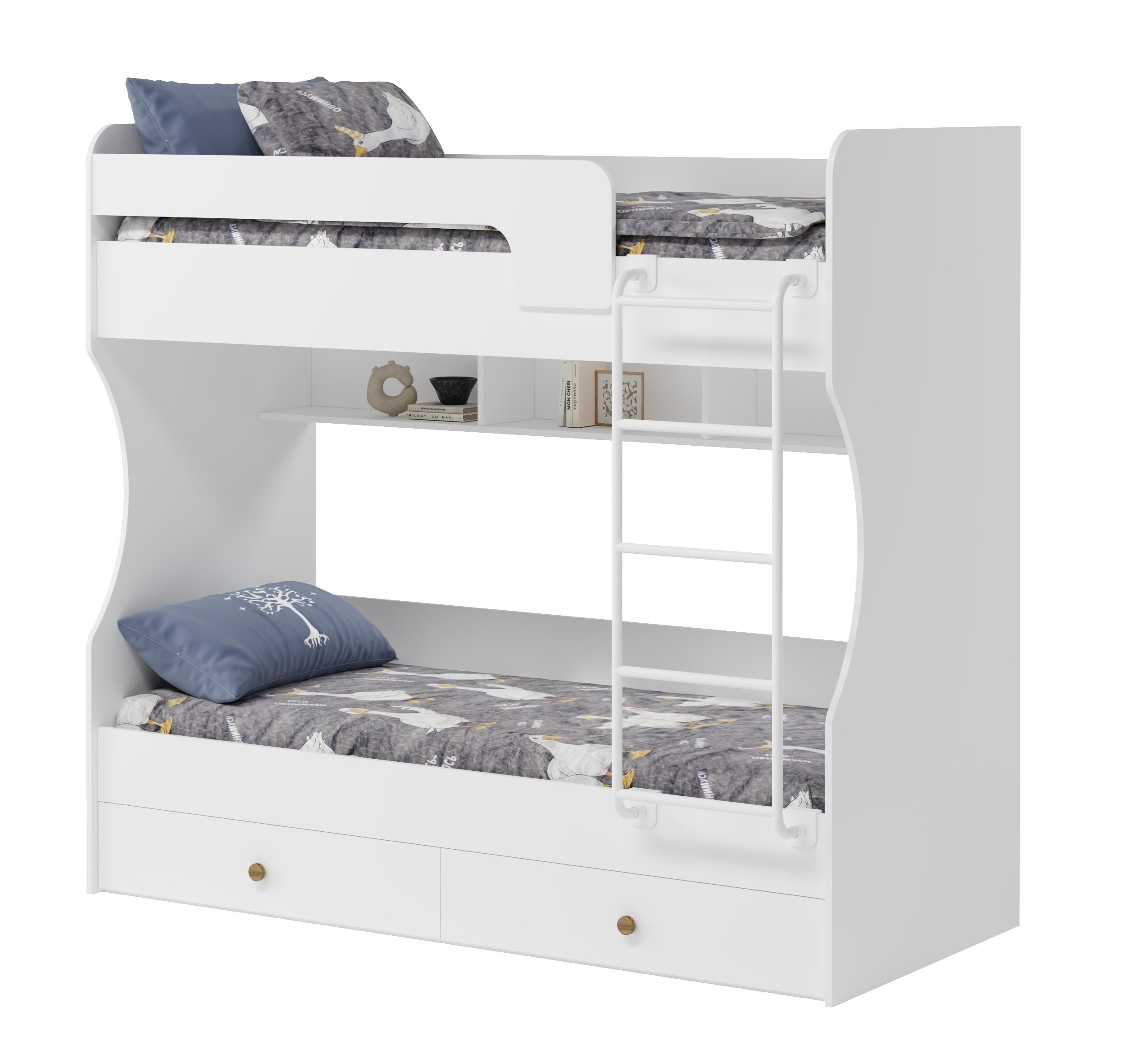 Двухъярусная кровать в белом цвете идеальна для любых интерьеров.