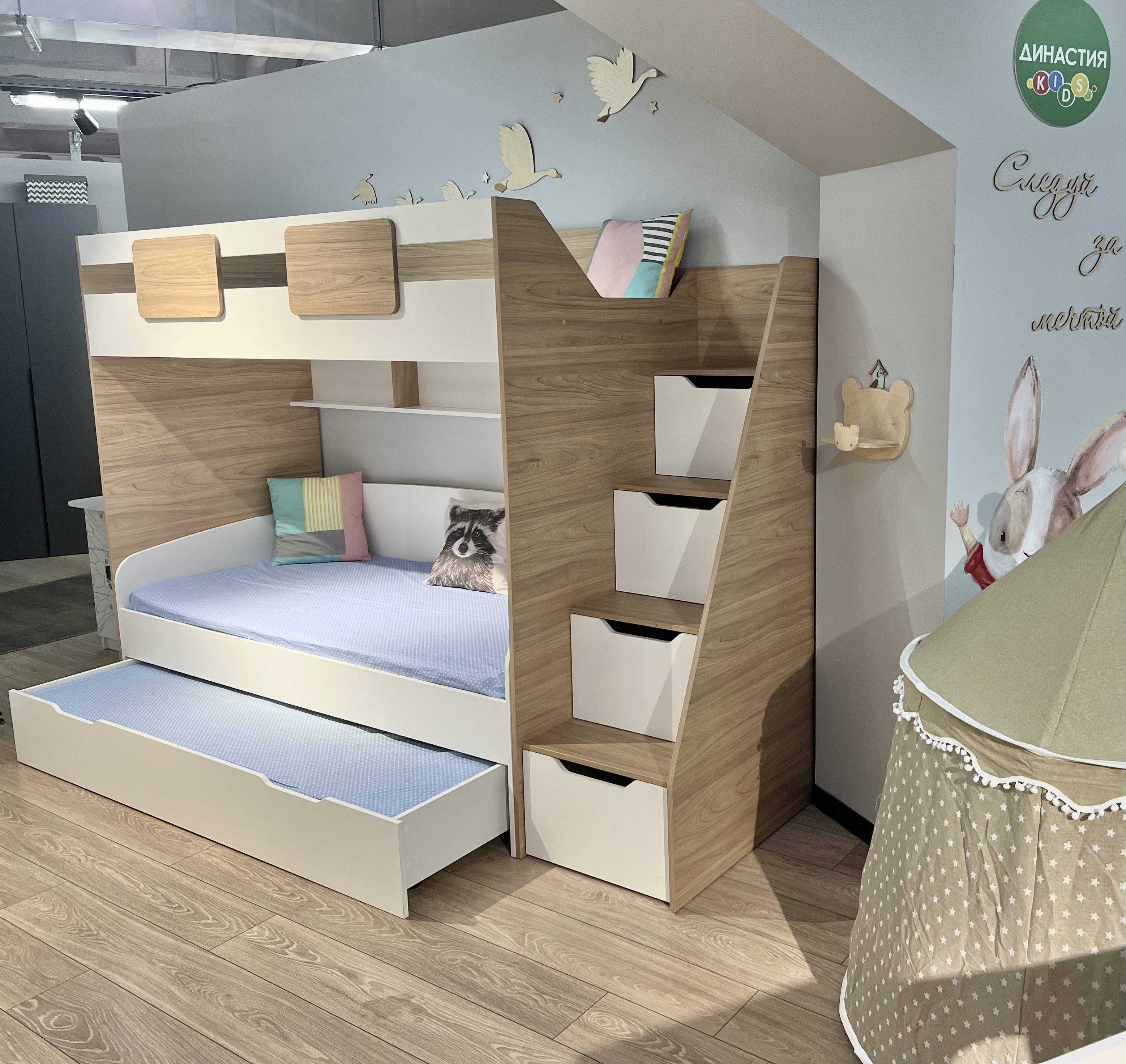 Вместо них - цельный и прочный настил из ЛДСП, который выдерживает сверхвысокую нагрузку и позволяет расположиться даже взрослому с ребенком.