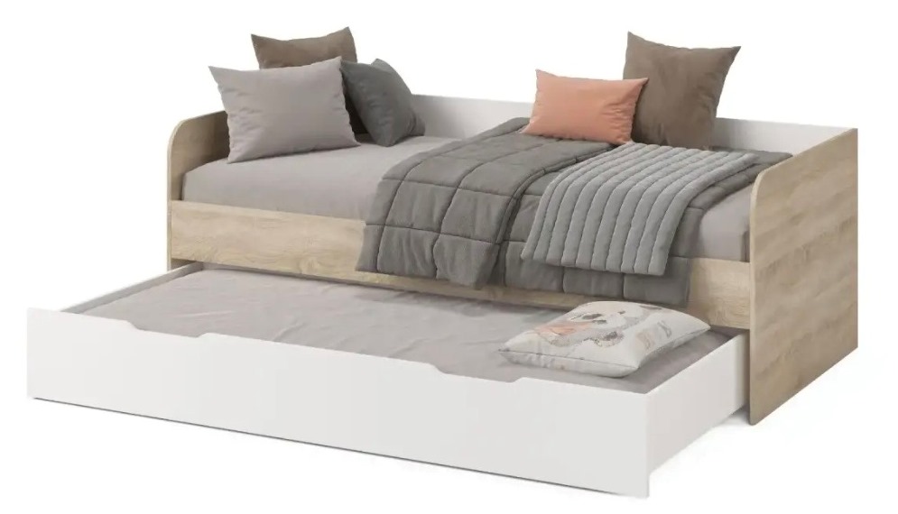 Экономия пространства: выдвижное спальное место легко убирается под основную кровать, освобождая место для игр и активного отдыха.