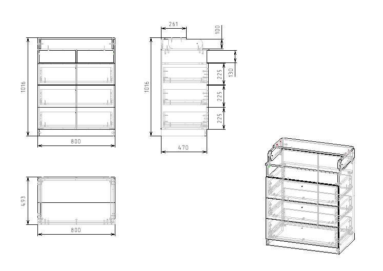Габариты комода: ширина 800, высота 1016, глубина 470 мм