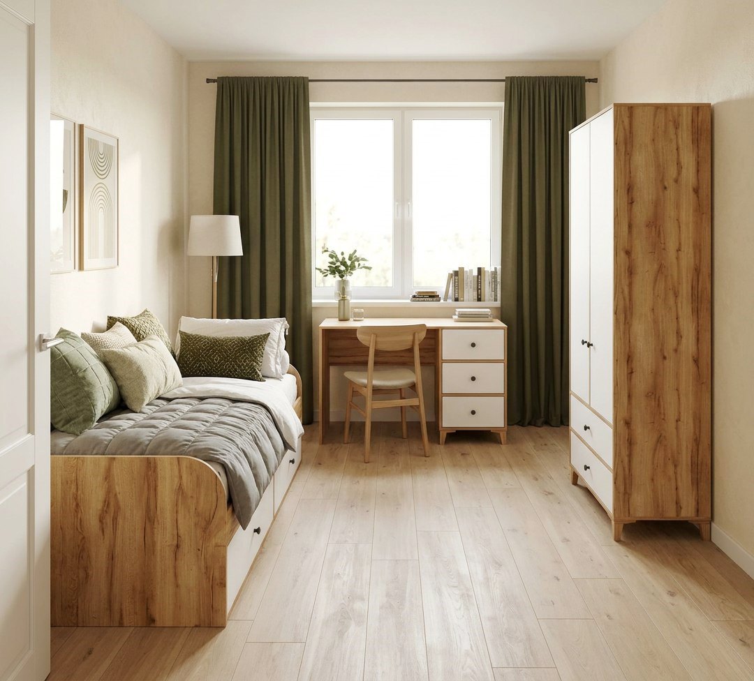 Мебель выполнена из сертифицированного, качественного, экологически чистого ЛДСП класса Е0,5 в сочетании цветов дуб золотистый с белым.