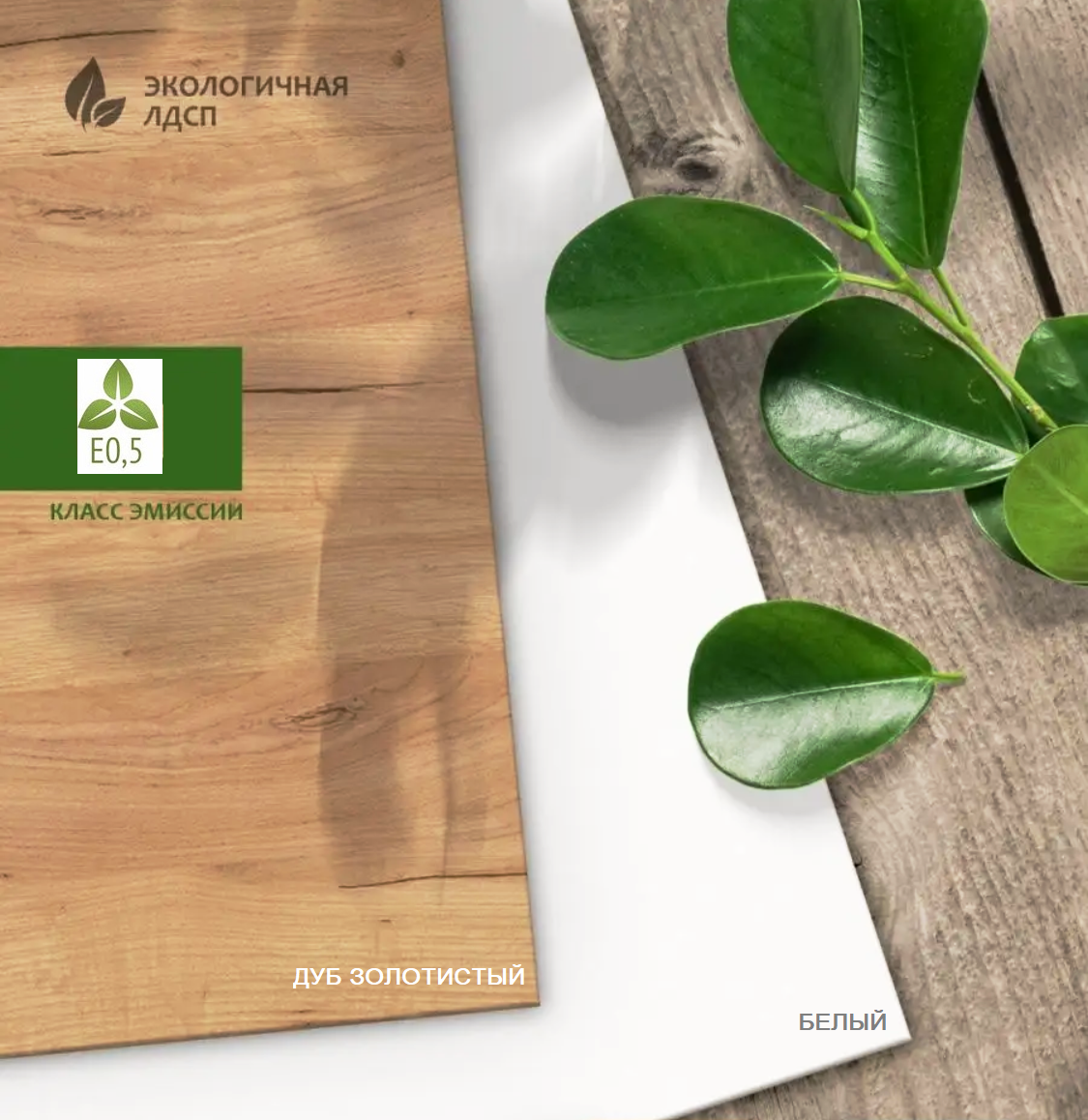 ЛДСП Е0,5. Толщина 16 мм. Цвет: дуб золотистый+белый