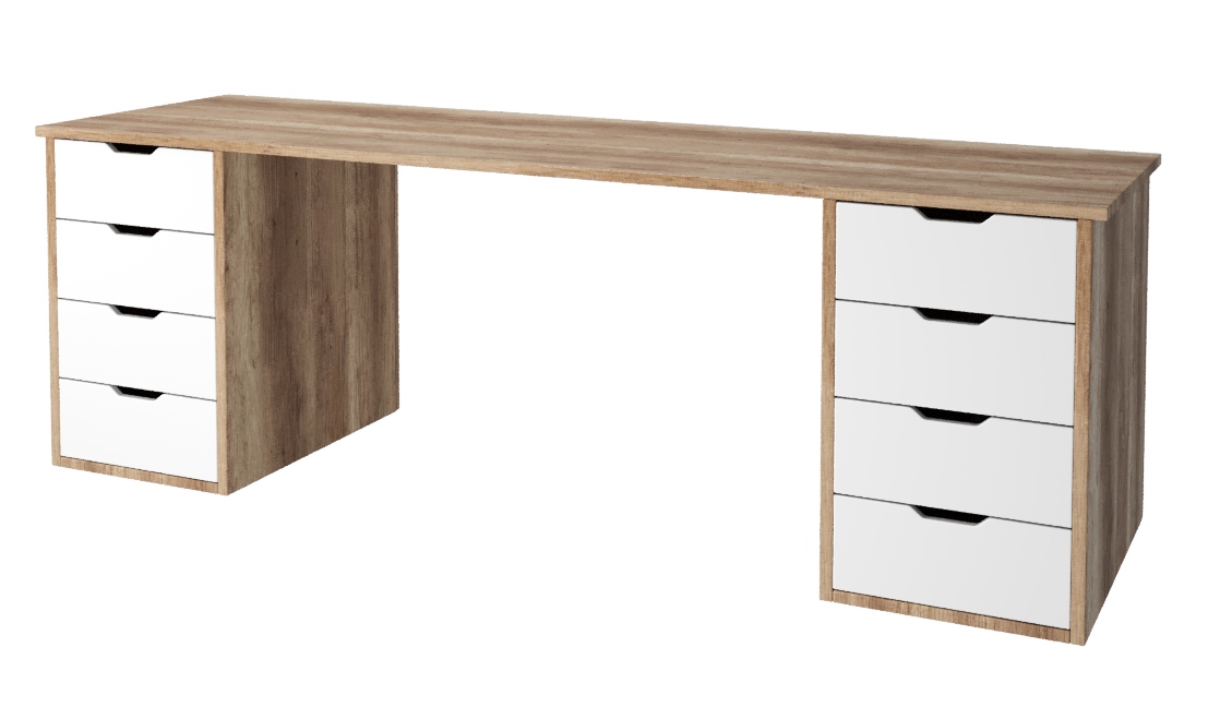 —Стол Дуэт 2000 мм (две тумбы) дуб каньон + белый. Столешница 22 мм