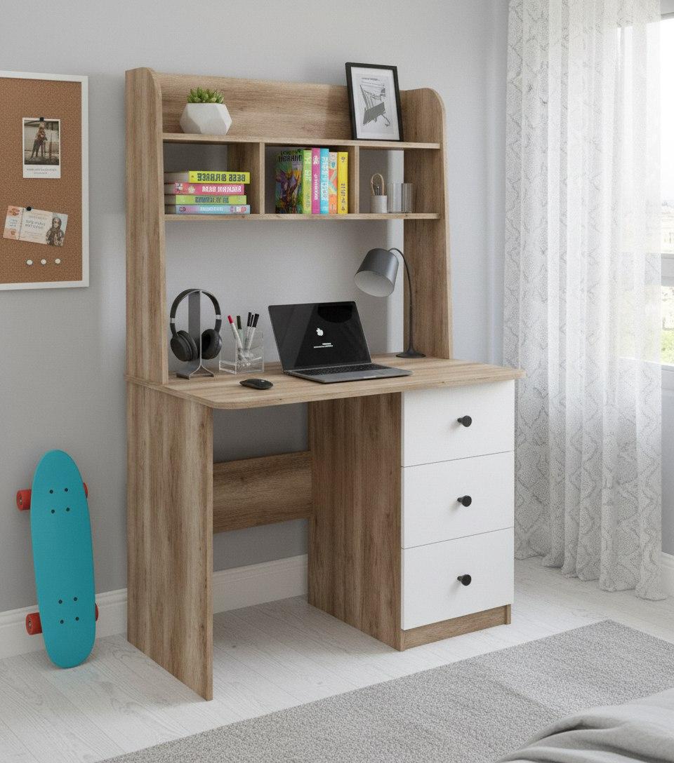 Стол 1000 мм Практик-3 (дуб каньон+белый). Левый/правый от Династия Kids