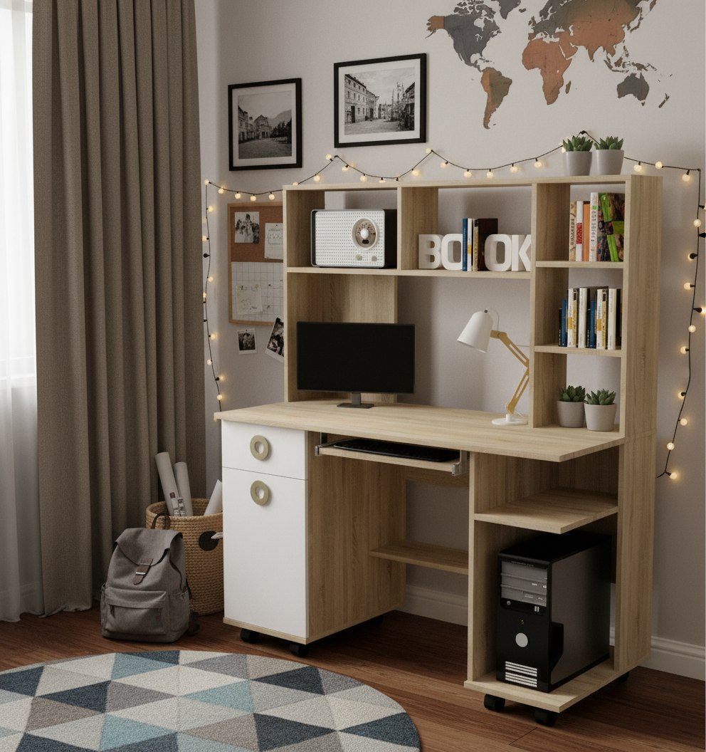 Стол письменный Костер (дуб сонома + белый) от Династия Kids