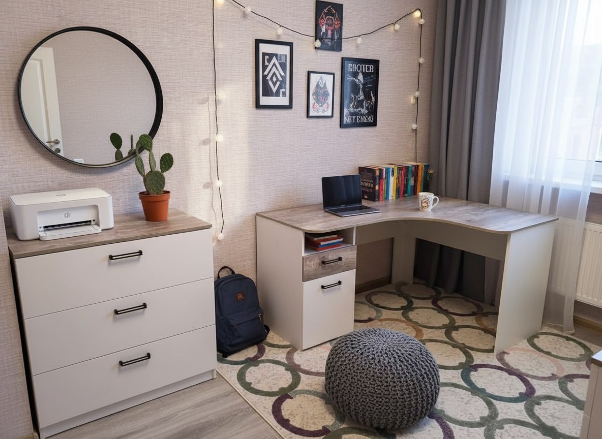 Мебель выполнена из сертифицированного, качественного, экологически чистого ЛДСП класса Е0,5 в сочетании цветов "бетон пайн" + белый.