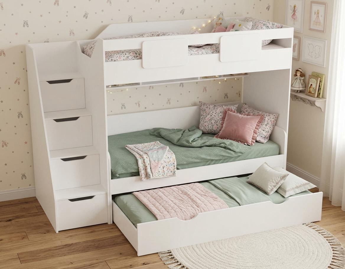 В лестницу встроены выдвижные ящики для игрушек - удобно и практично.