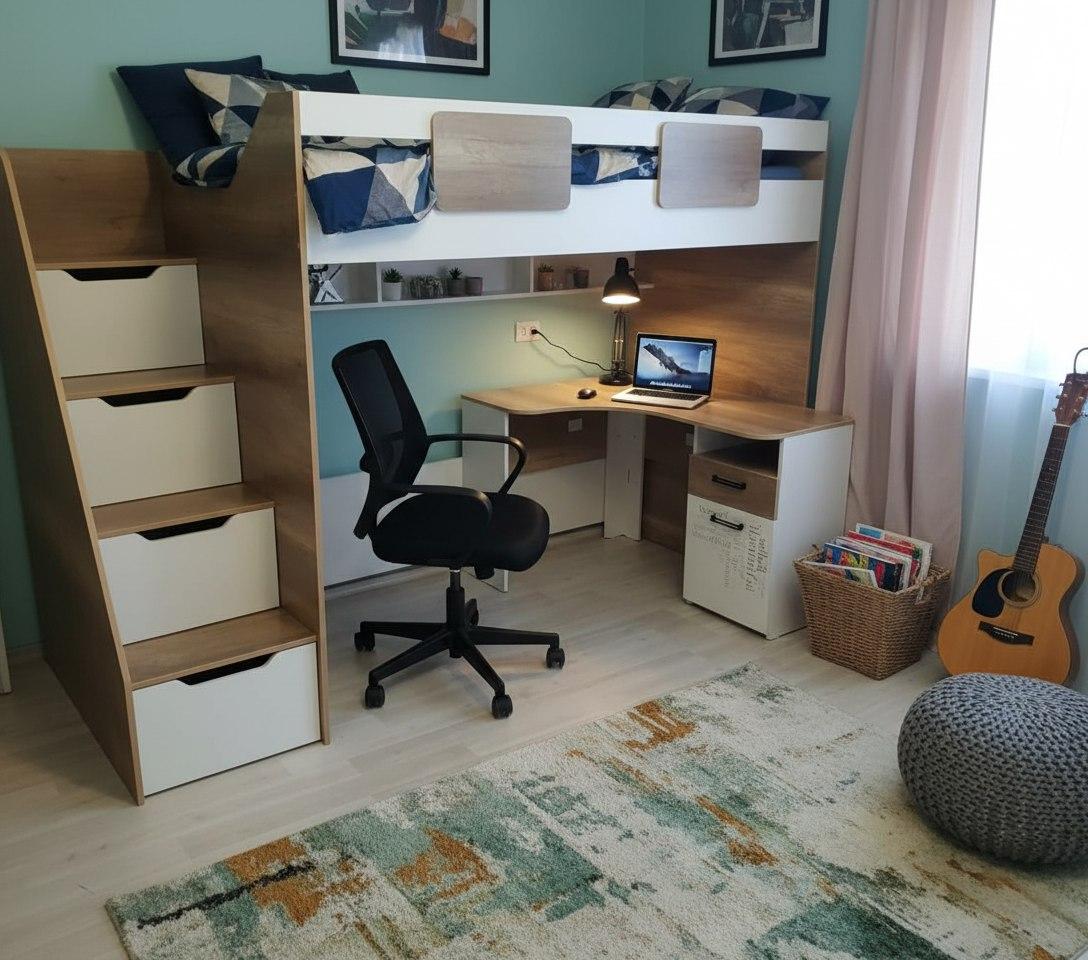 Вместо них - цельный и прочный настил из ЛДСП, который выдерживает сверхвысокую нагрузку и позволяет расположиться даже взрослому с ребенком.