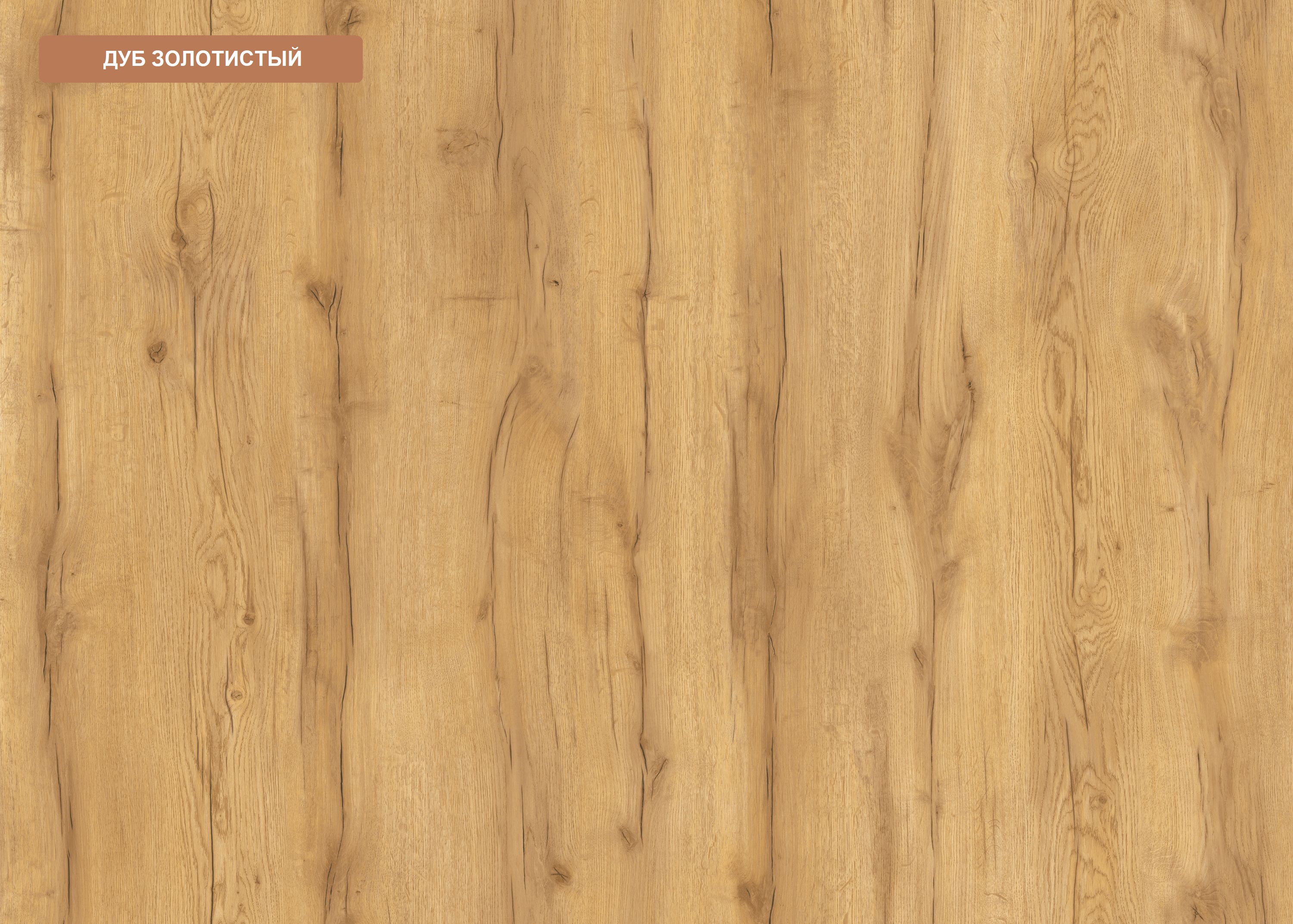 Декор "дуб золотистый" обладает естественной природной привлекательностью, имеет выразительные полосы и следы от сучков.