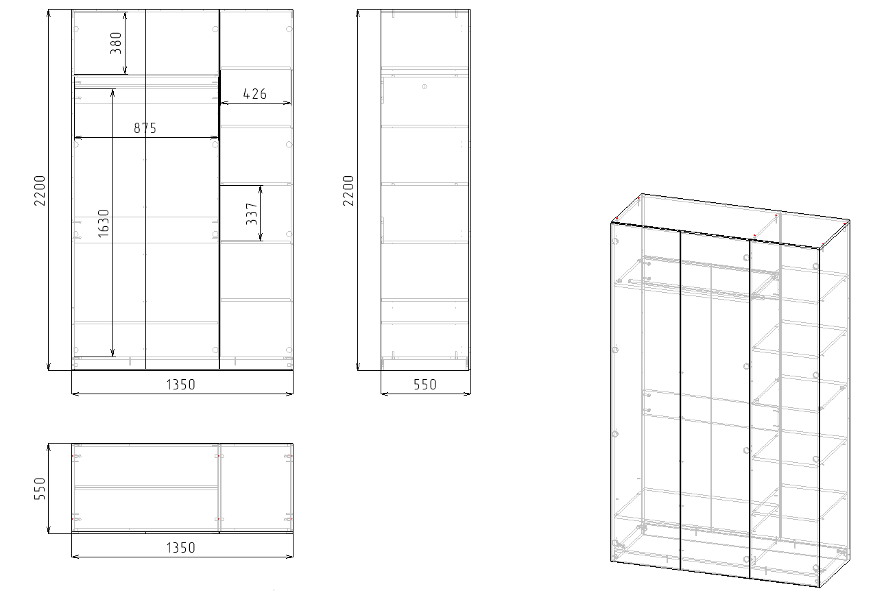 Трехдверный распашной шкаф коллекции мебели Брайт Графит - функциональное решение для хранения одежды, обуви и аксессуаров.