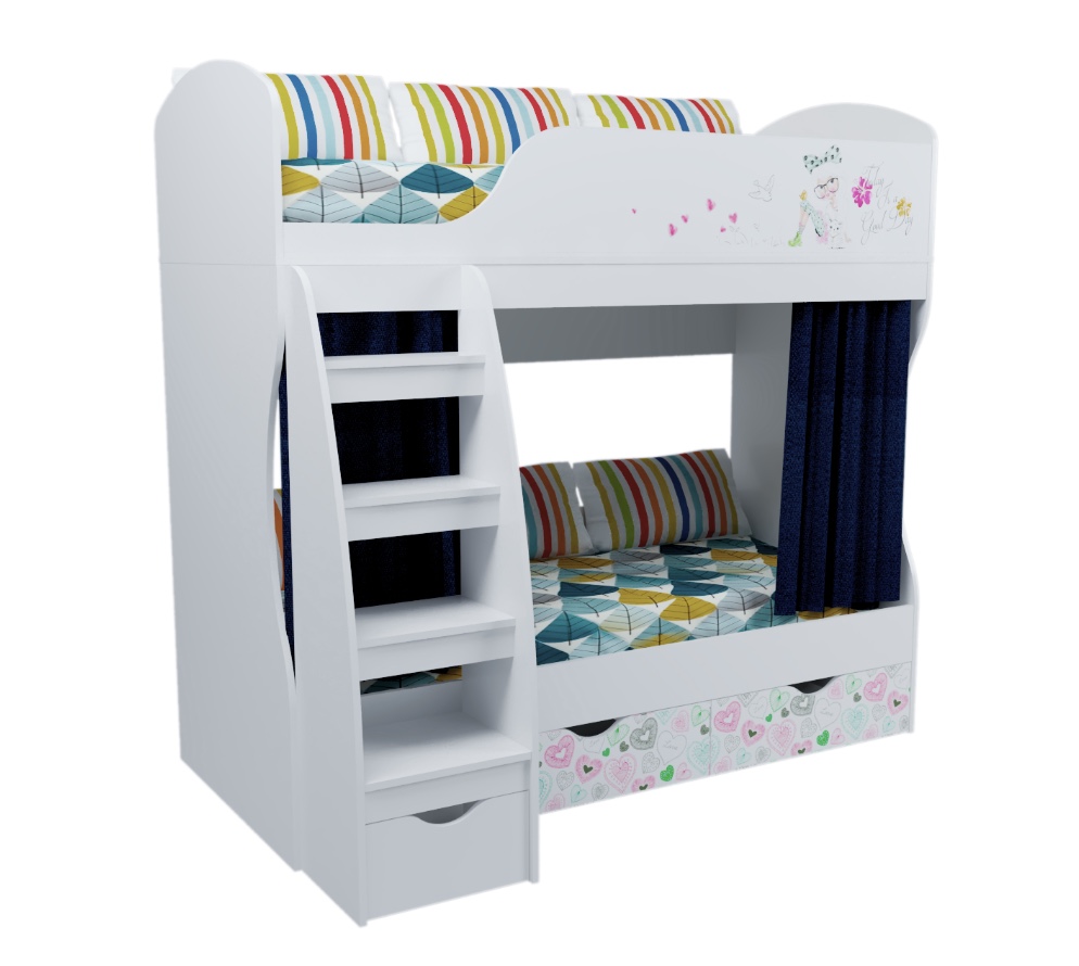 Высокая нагрузка на спальные места. Прочный, высокий, безопасный бортик. Прочные ящики! |