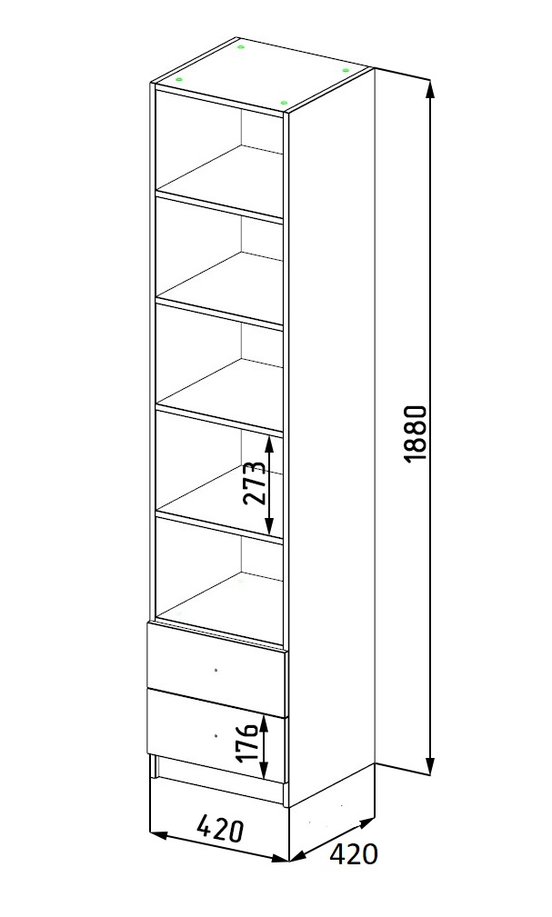 Габариты: ширина 420 х высота 1880 х глубина 420 мм