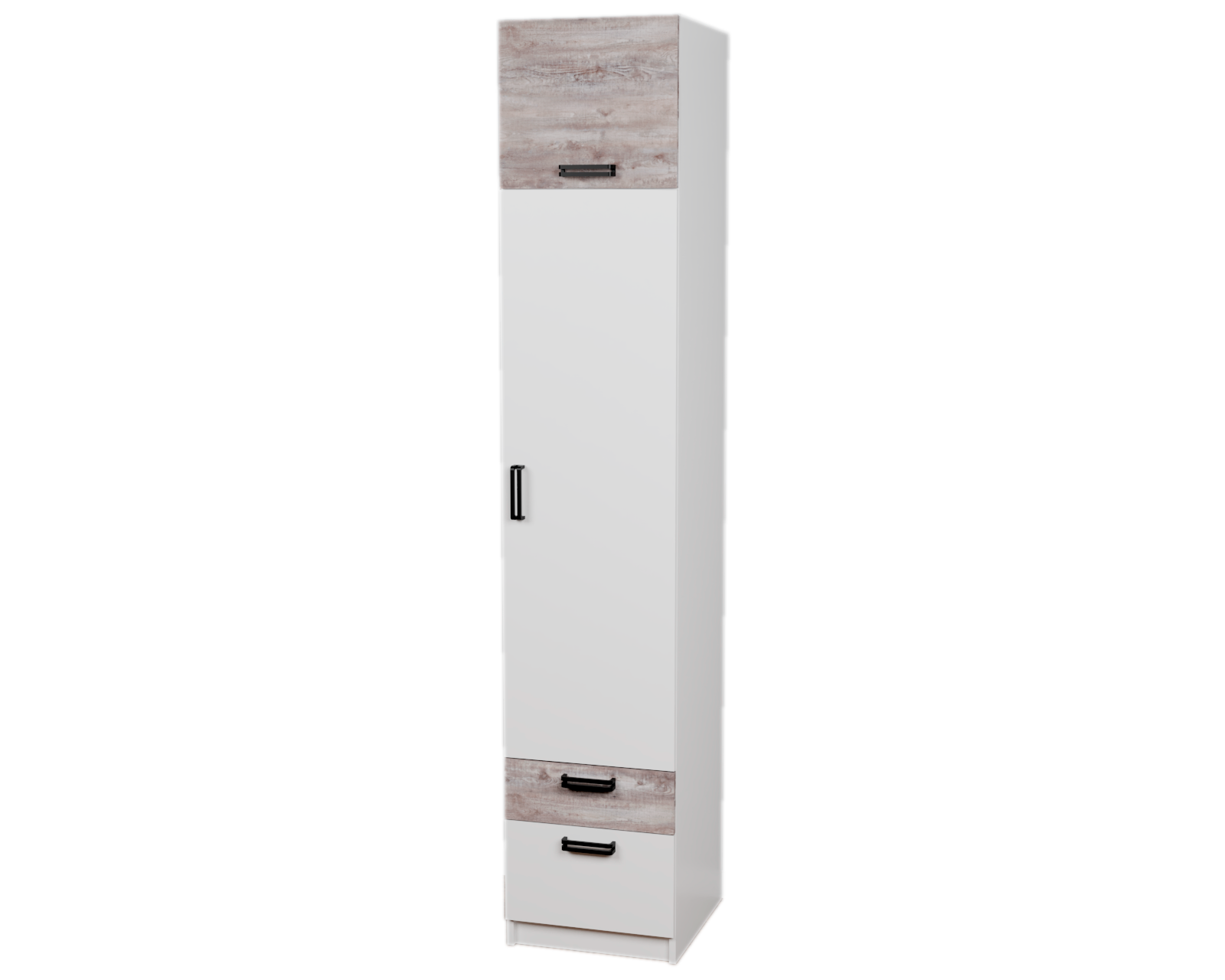 Мебель выполнена из сертифицированного, качественного, экологически чистого ЛДСП Е0,5 в сочетании цветов "бетон пайн" + белый.