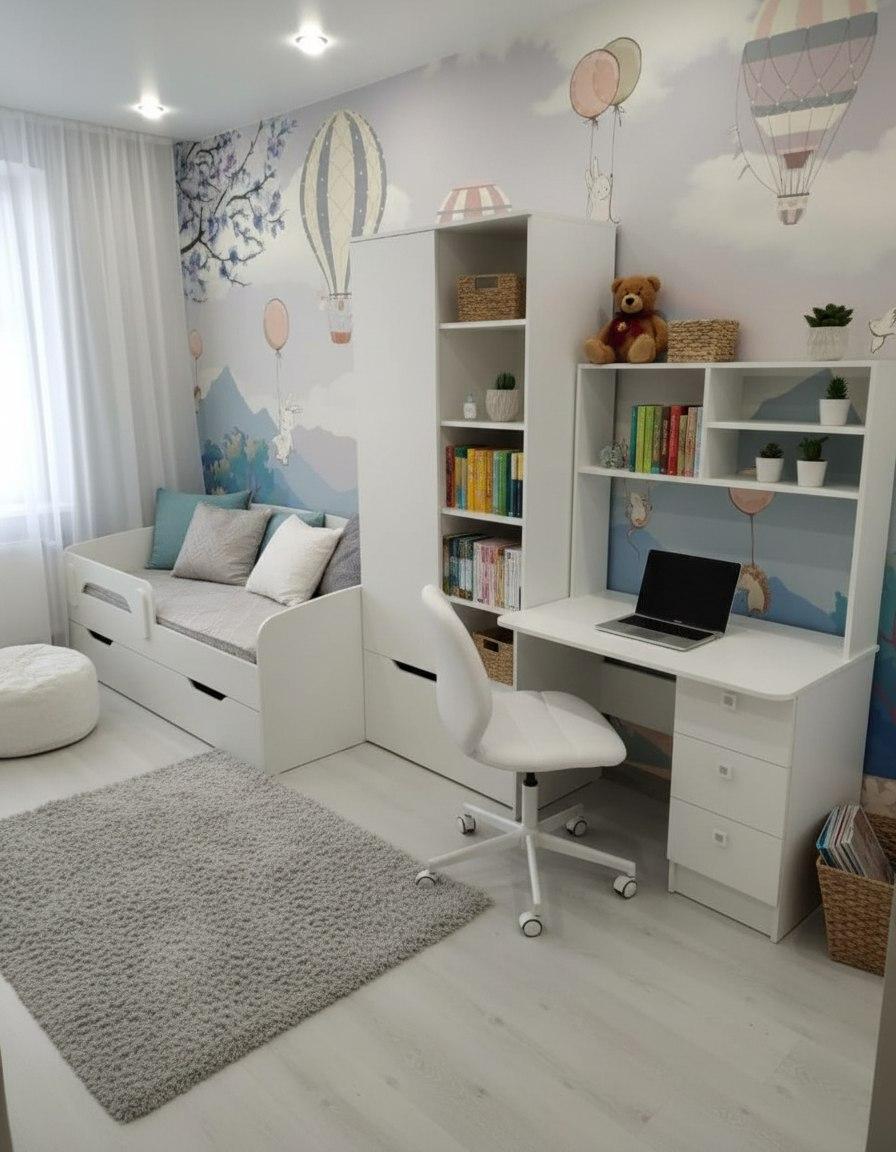 —Комплект мебели: стол Умка + стеллаж Мозаика + кровать Двушка