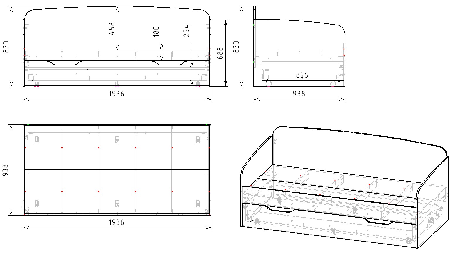 Спальное место низ: 180 х 80 см - нагрузка на спальное место до 80 кг