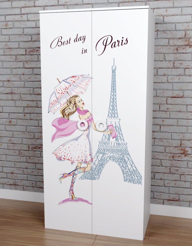 Шкаф выполнен из сертифицированного, качественного, экологически чистого ЛДСП Е0,5 в белом цвете с дизайнерским принтом.