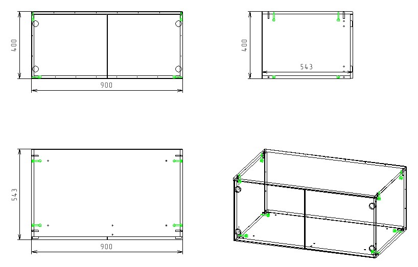 Габариты: ширина 900, высота 400, глубина 543 мм