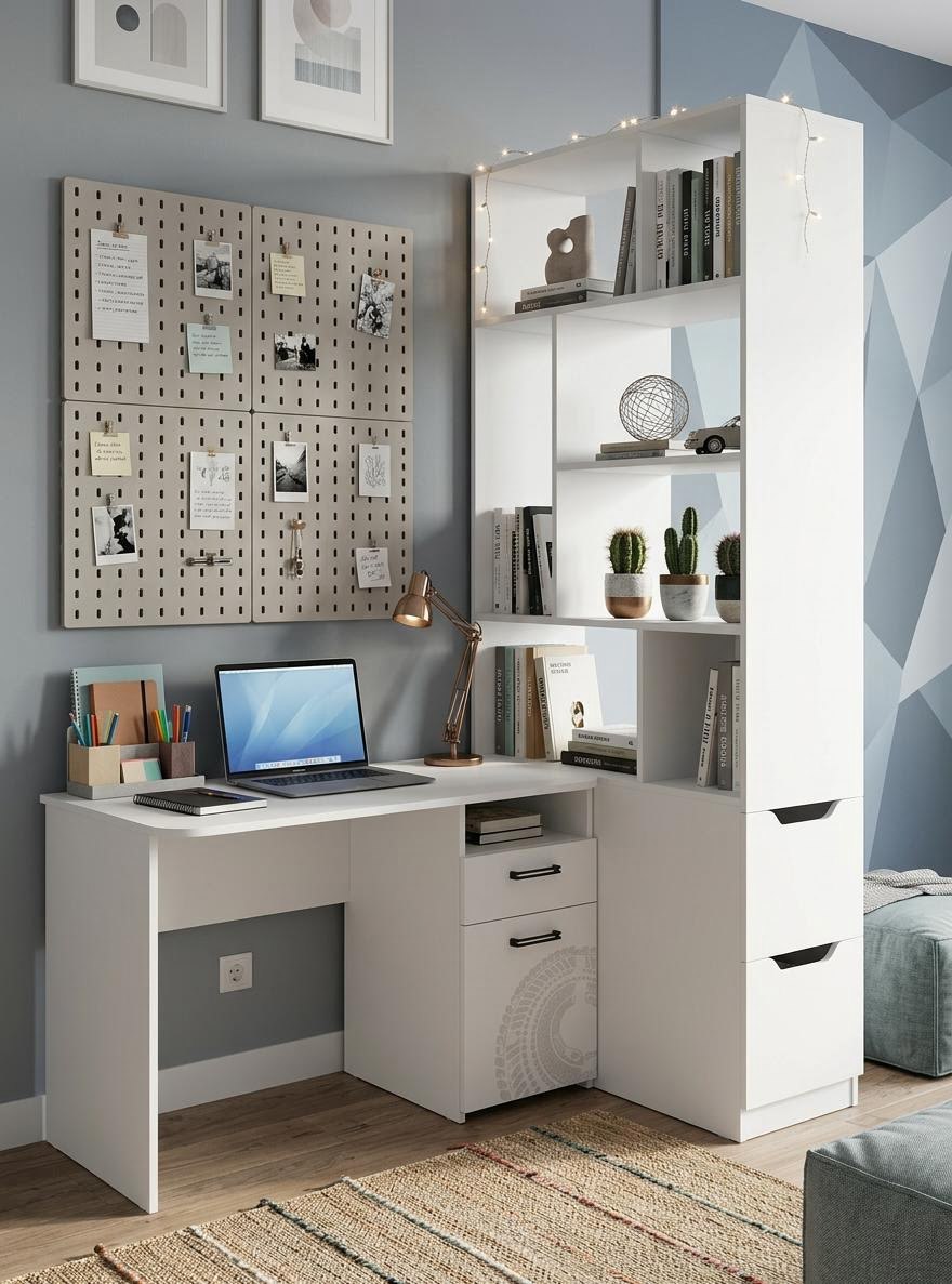 Благодаря установке стеллажа, комната становится уютнее, появляются новые уголки в ней.