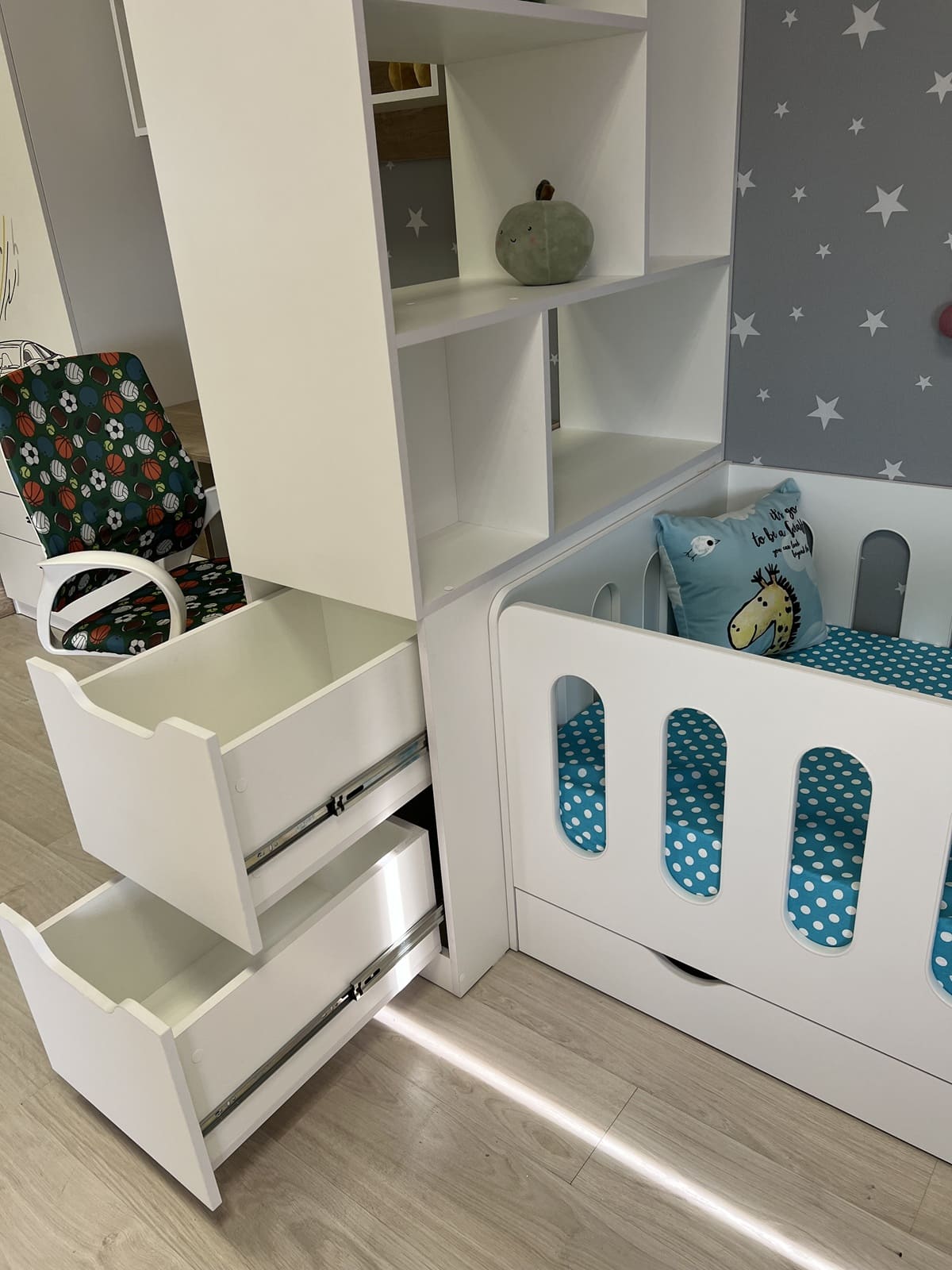 <comment>Обновили детскую. Стеллаж отдельная любовь. Очень удобный. Кроватка тоже шикарная. Спасибо! </comment>