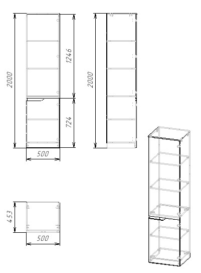 Габариты: ширина 500, высота 2000, глубина 453 мм