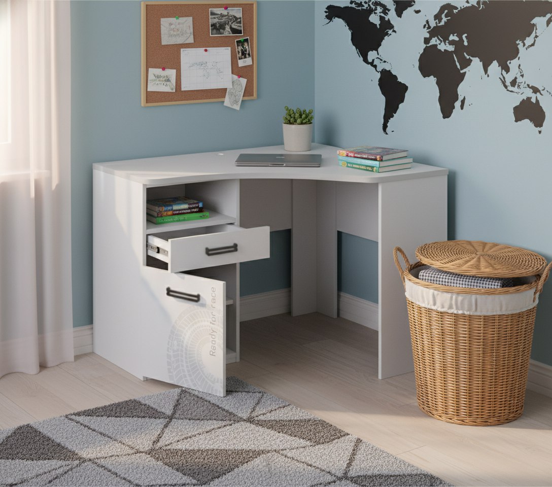 Мебель выполнена из сертифицированного, качественного, экологически чистого ЛДСП класса Е0,5 в белом цвете и оформлена дизайнерским принтом.