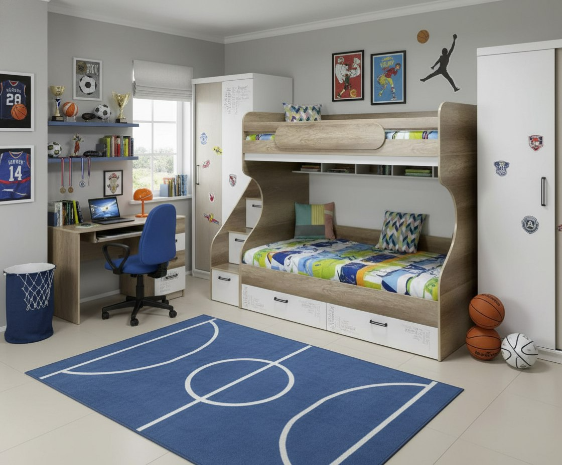 * Дополнительно к нижней кровати можно приобрести съемный бортик ограничитель.
