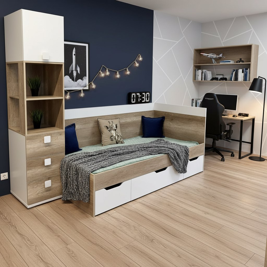 Современное решение для оформления интерьера комнаты подростка.