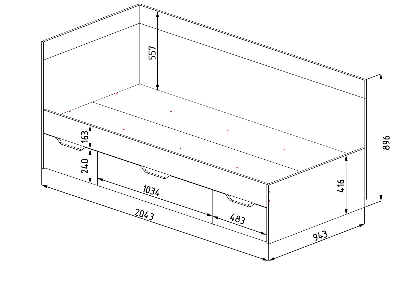 Габариты: ширина 2044 х высота 900 х глубина 943 мм