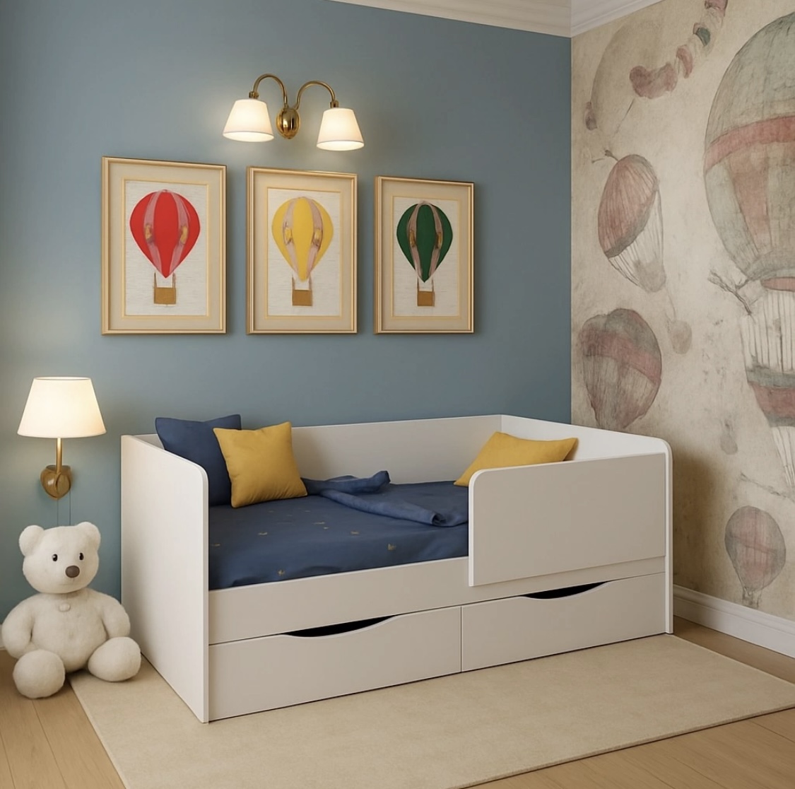 Вместо них - цельный и прочный настил из ЛДСП, который выдерживает сверхвысокую нагрузку и позволяет расположиться даже взрослому с ребенком.