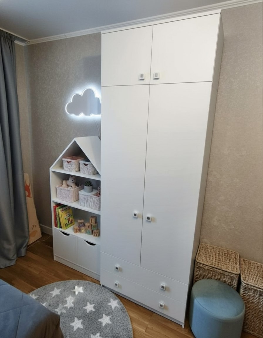 <comment>Заказывали ребёнку шкаф и кровать белого цвета. Оттенок цвета очень приятный, материал супер, ручки шкафа удобные и крепкие) отдельное спасибо доставке и мастеру по сборке, за оперативность.</comment>