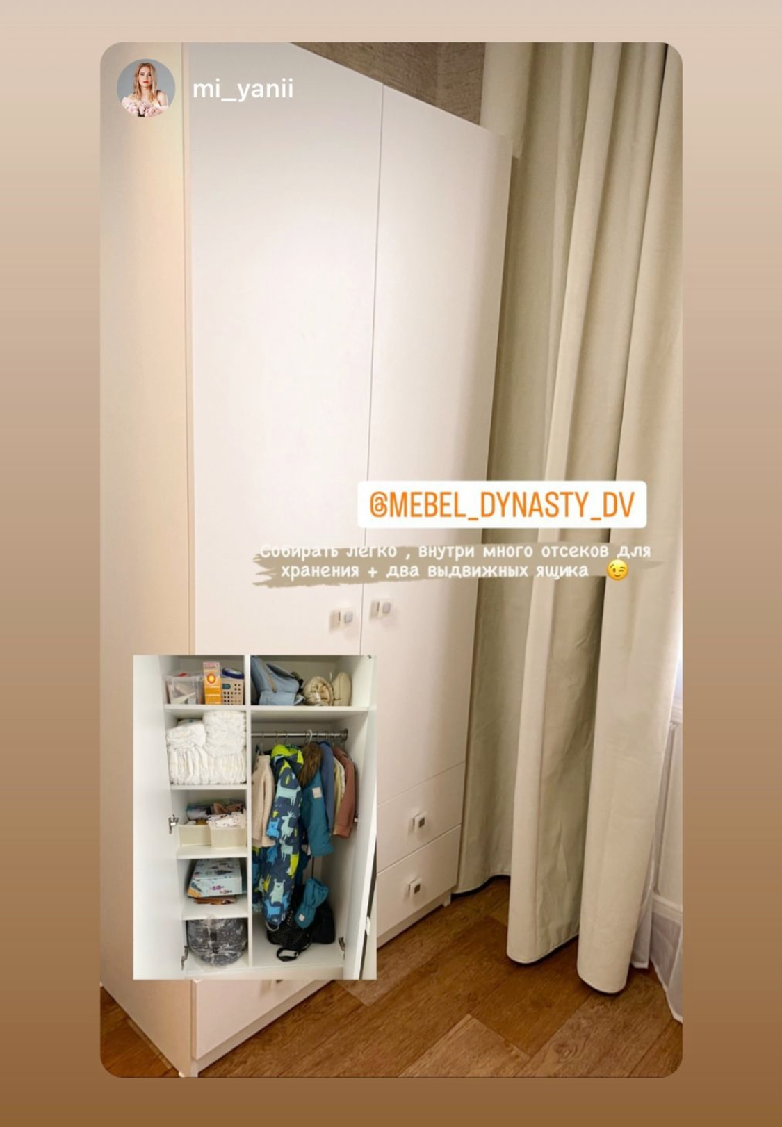Это позволяет удобно разместить одежду, обувь и аксессуары.