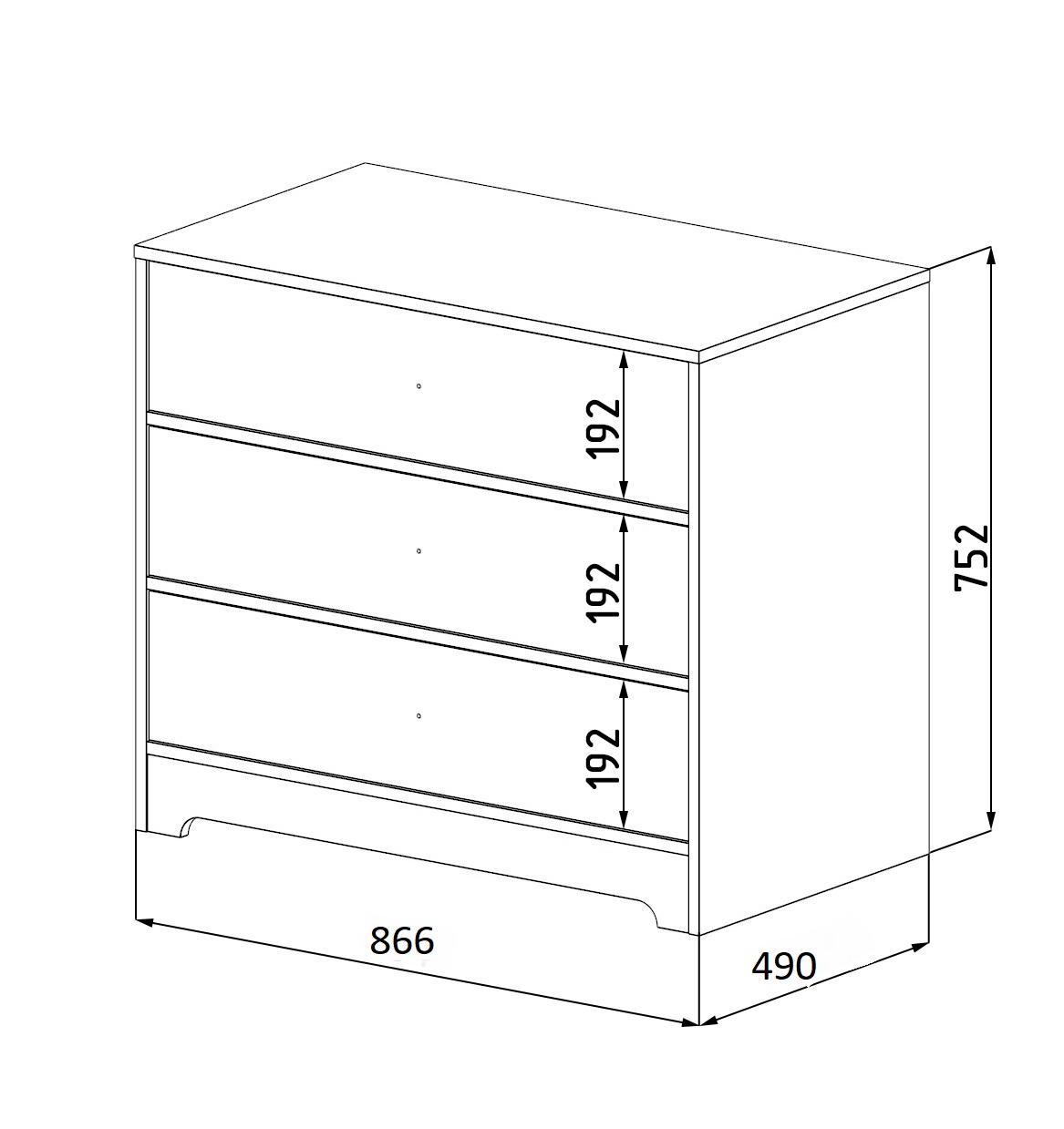ширина 866, глубина 490, высота 752 мм