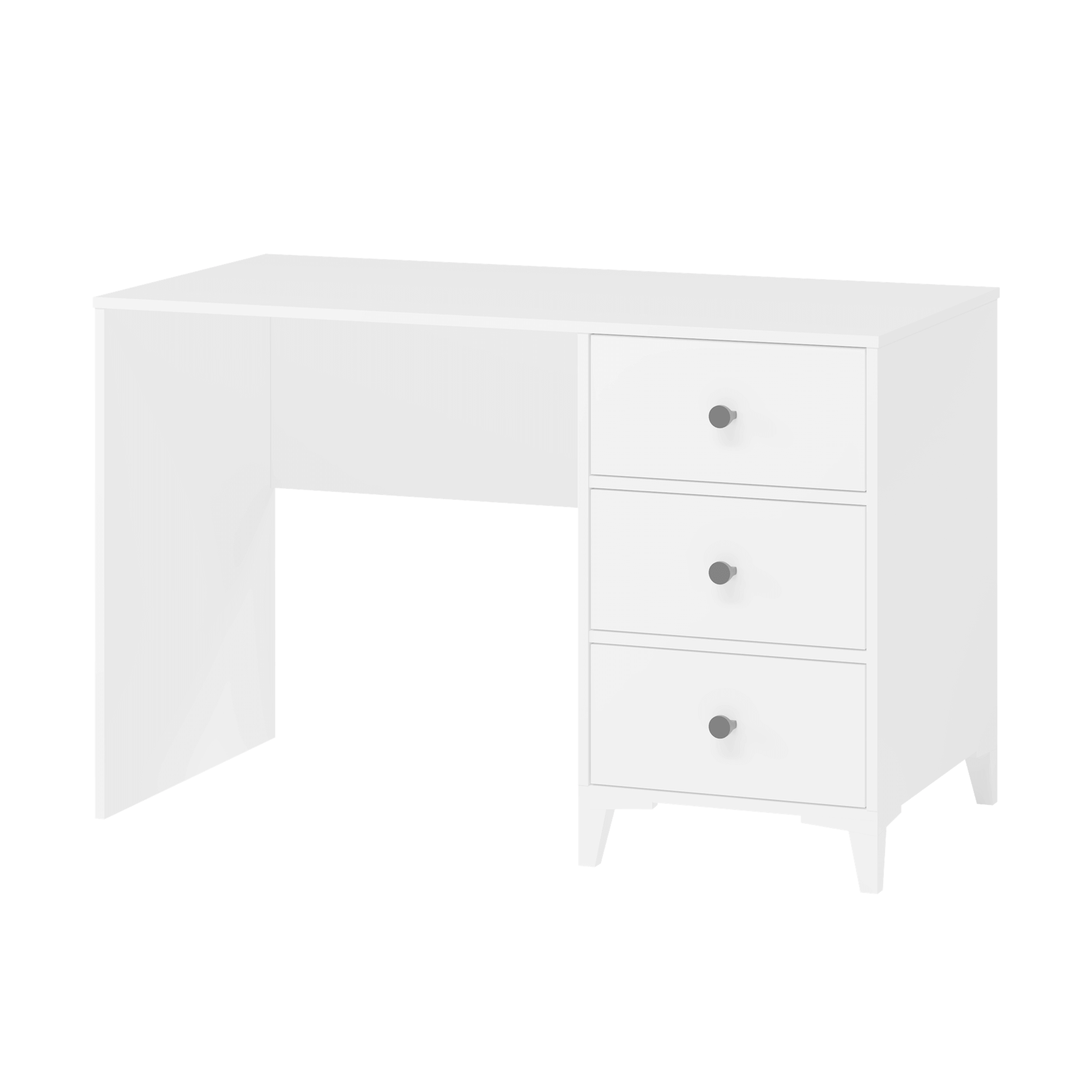 В стол встроены три выдвижных ящика на направляющих скрытого монтажа с доводчиками.