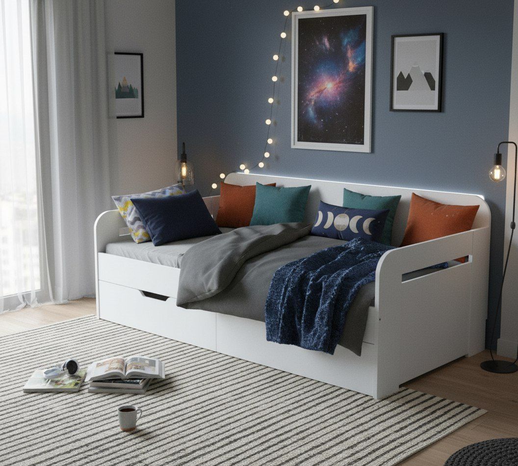 Высокая нагрузка на спальное место. Полновыкатные прочные ящики!