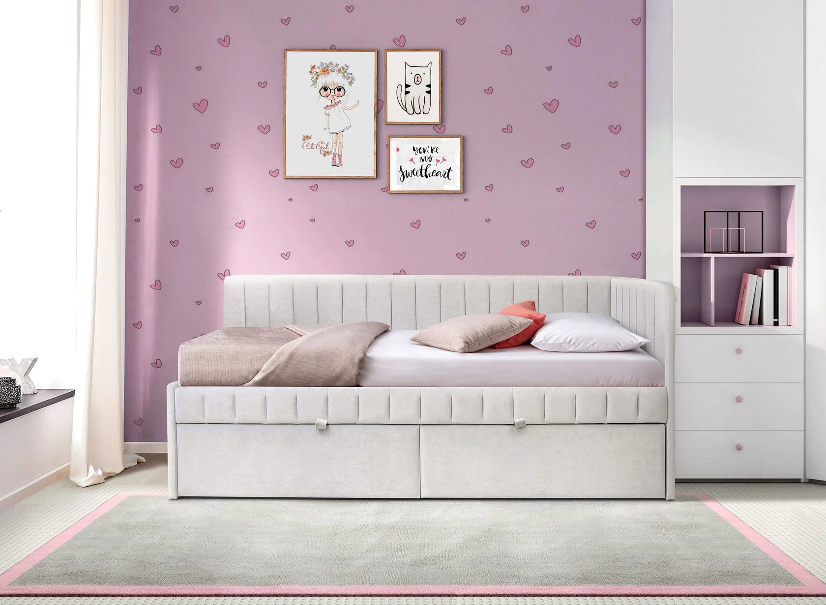 Очень уютный, компактный и стильный диванчик станет прекрасным спальным местом в комнате ребенка.