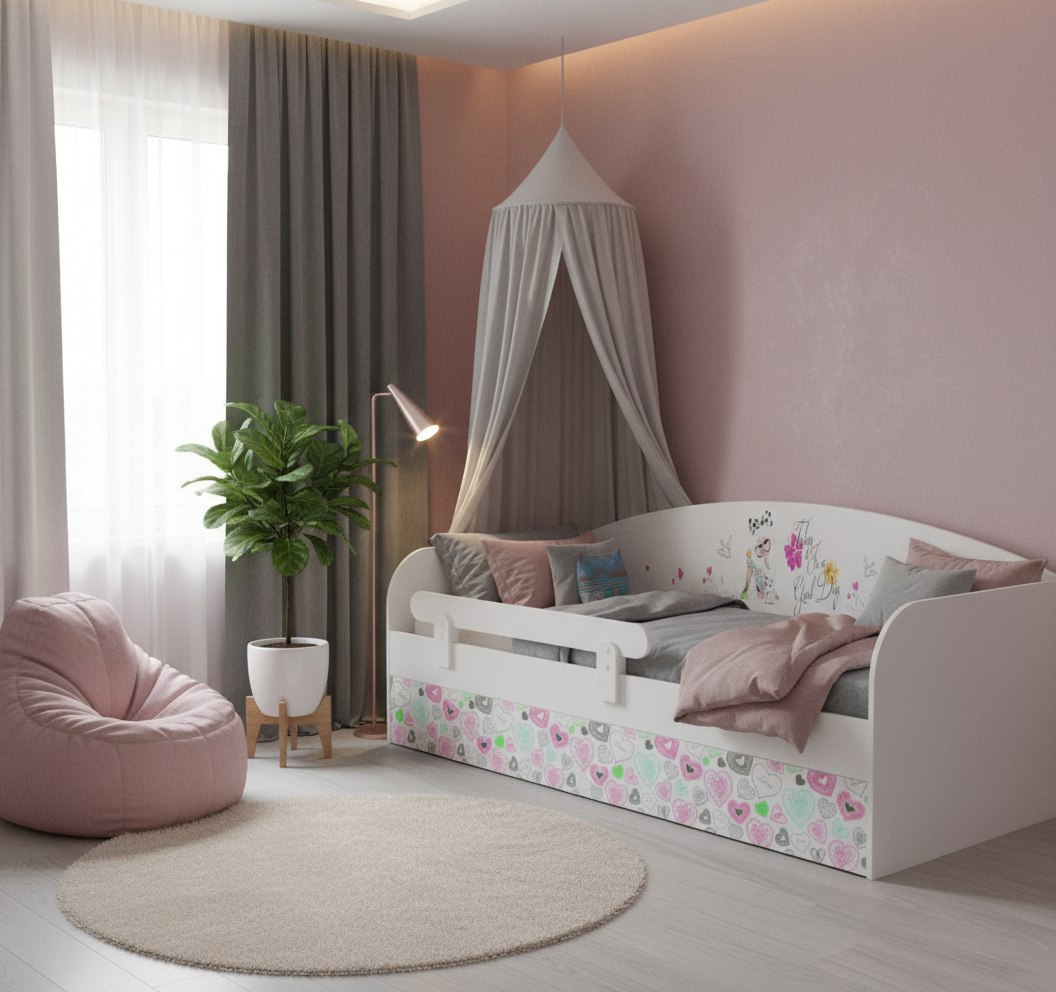 Мебель выполнена из сертифицированного, качественного, экологически чистого ЛДСП Е0,5 в белом цвете с дизайнерским принтом
