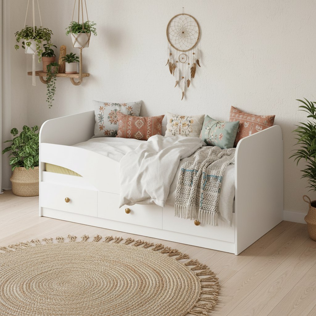 В кровать встроены три выдвижных ящика для белья и игрушек.
