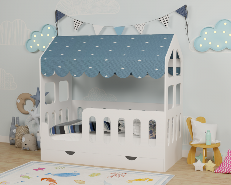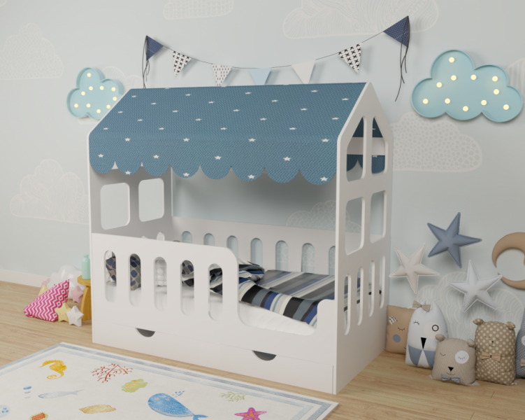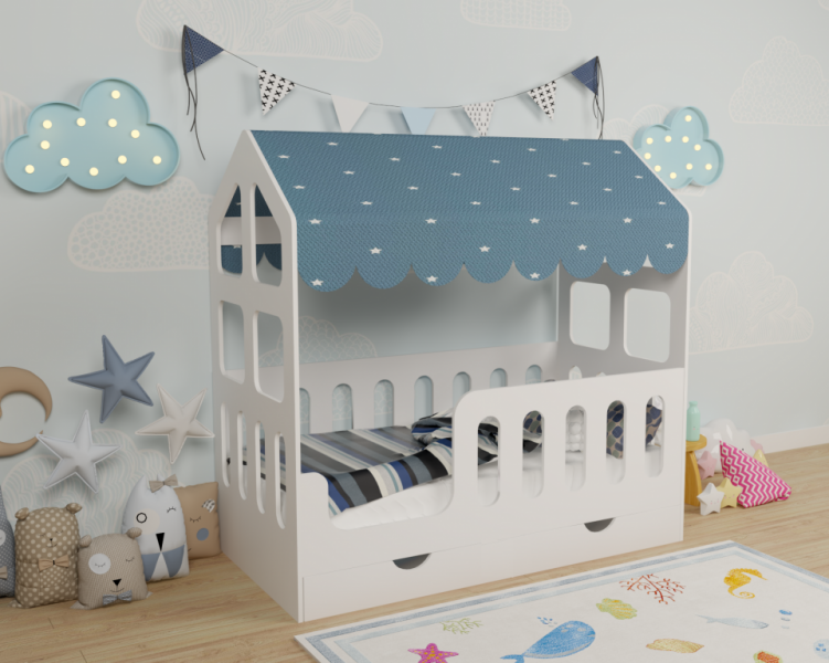 Вместительный выдвижной ящик позволяет разместить постельное белье или игрушки.