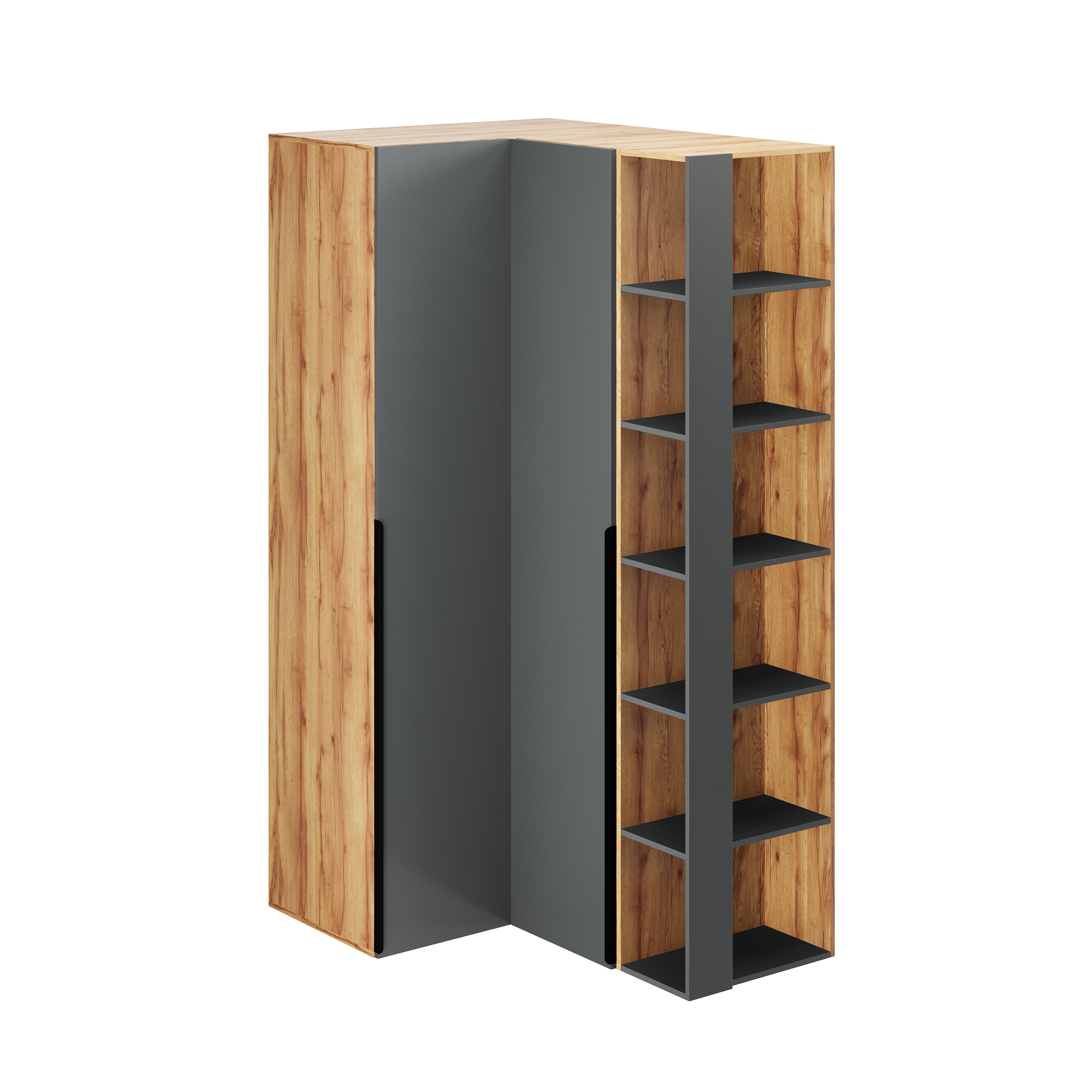 Угловой шкаф + пенал + торцевой стеллаж коллекции Брайт Графит