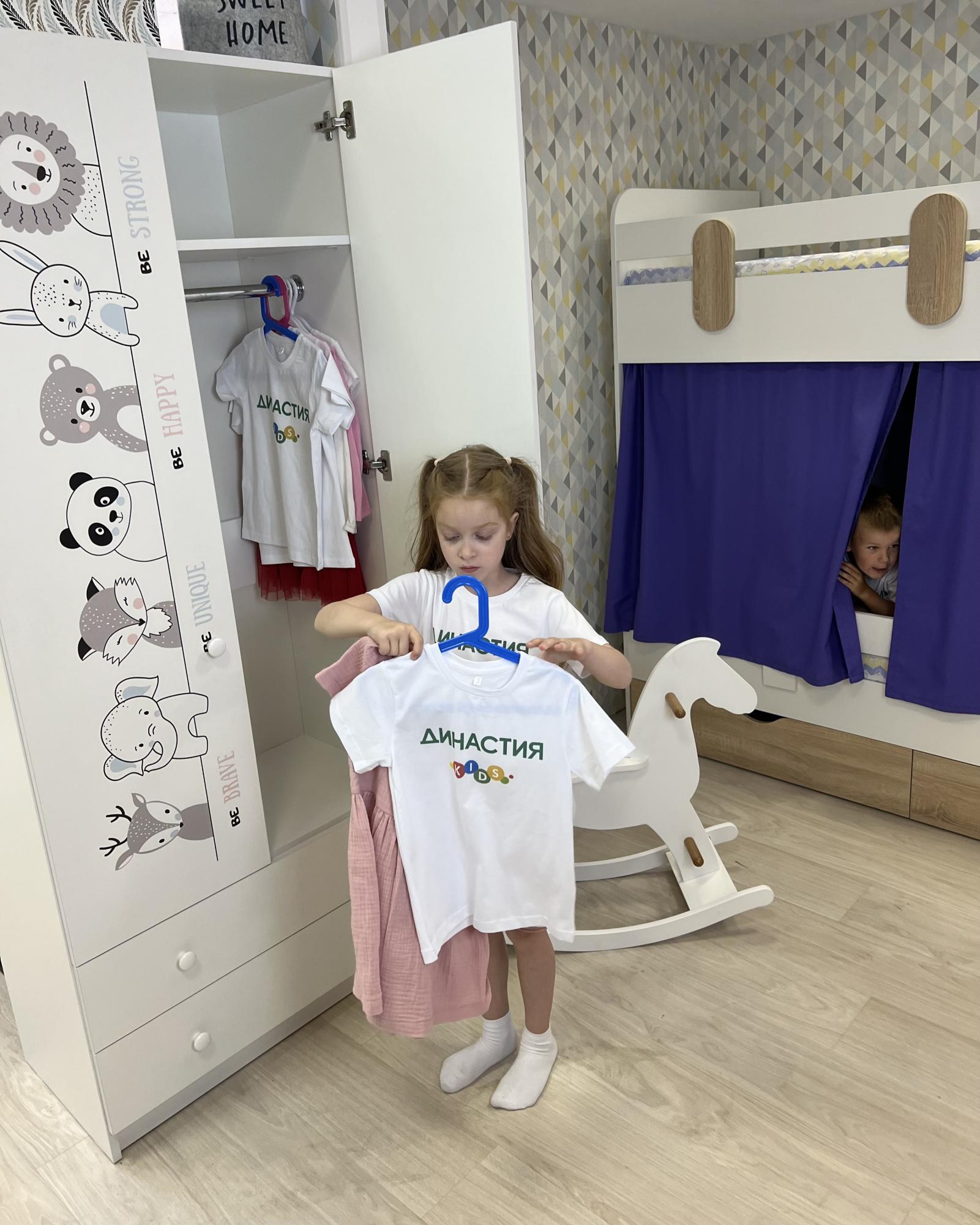 - Адаптивность: внутреннее пространство шкафа можно легко перестраивать с учетом роста и возраста ребенка, что помогает приучать его к самостоятельности и организованности.